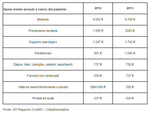 Nel contempo, aumentano rispetto al 2012 i costi sostenuti privatamente dai cittadini.
