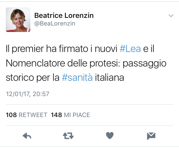 Sempre su Twitter, con tanto di foto del decreto firmato, l'ha annunciato anche il portavoce del premier, Filippo Sensi: “Firmato da Paolo Gentiloni oggi il Dpcm sui #Lea, Livelli Essenziali Assistenza #SSN” (Clicca qui per scaricare il DPCM sui LEA, del 12 gennaio 2017).